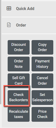Note: Special Orders cannot be updated using this method. You must receive the special order PO using a vendor shipment – or complete the inter-store transfer. At which point stock will automatically allocate for the customer order. If you wish to fill a special order from open stock – cancel the back order, then use the Check Backorders button from the customer order action menu.
