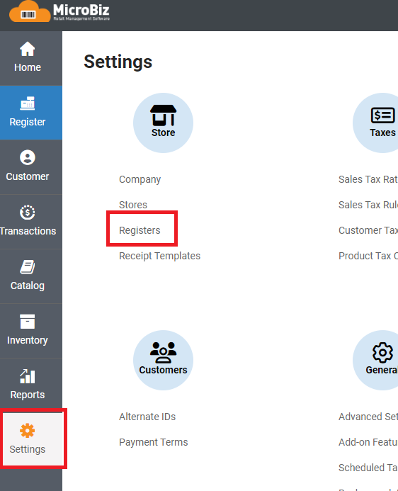 If you are receiving this 'POS Online' message, you are ready to pair your device with MicroBiz. To do so, login to your MicroBiz store and navigate to Settings > Store > Registers.