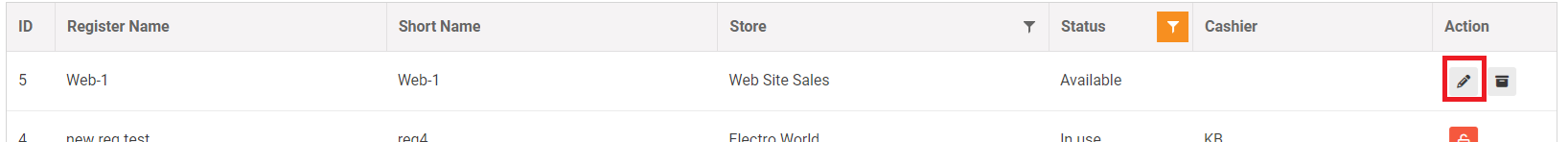 Open up the register you would like to associate the payment terminal. In my example I will use WEB-1. To open it please use the button with the pencil on it