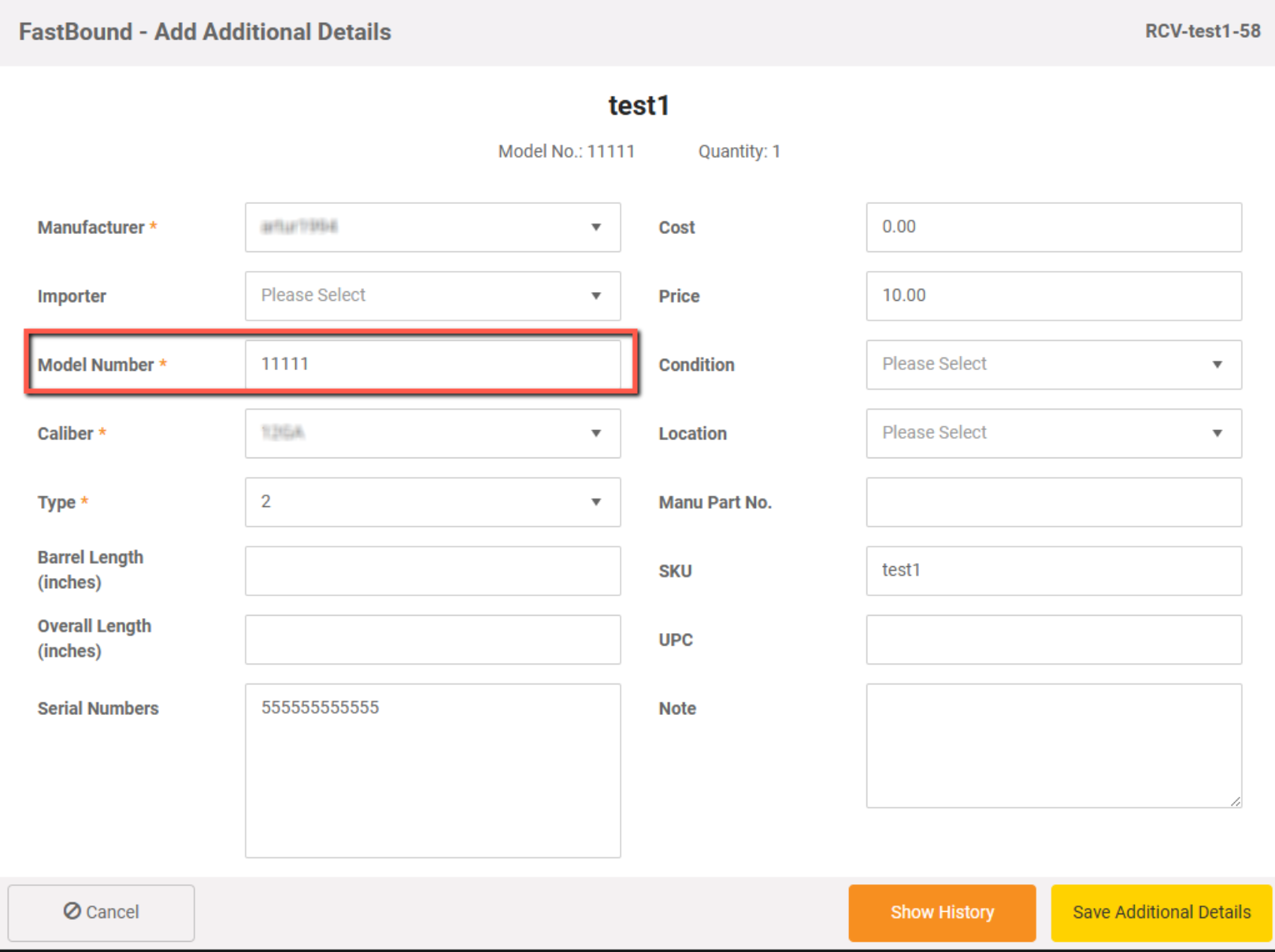 made this a required field for firearms. The Model field now maps to the Model field in FastBound acquisition.