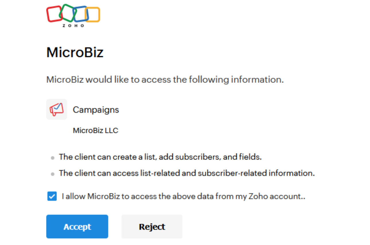 Connecting MicroBiz to Zoho Campaign