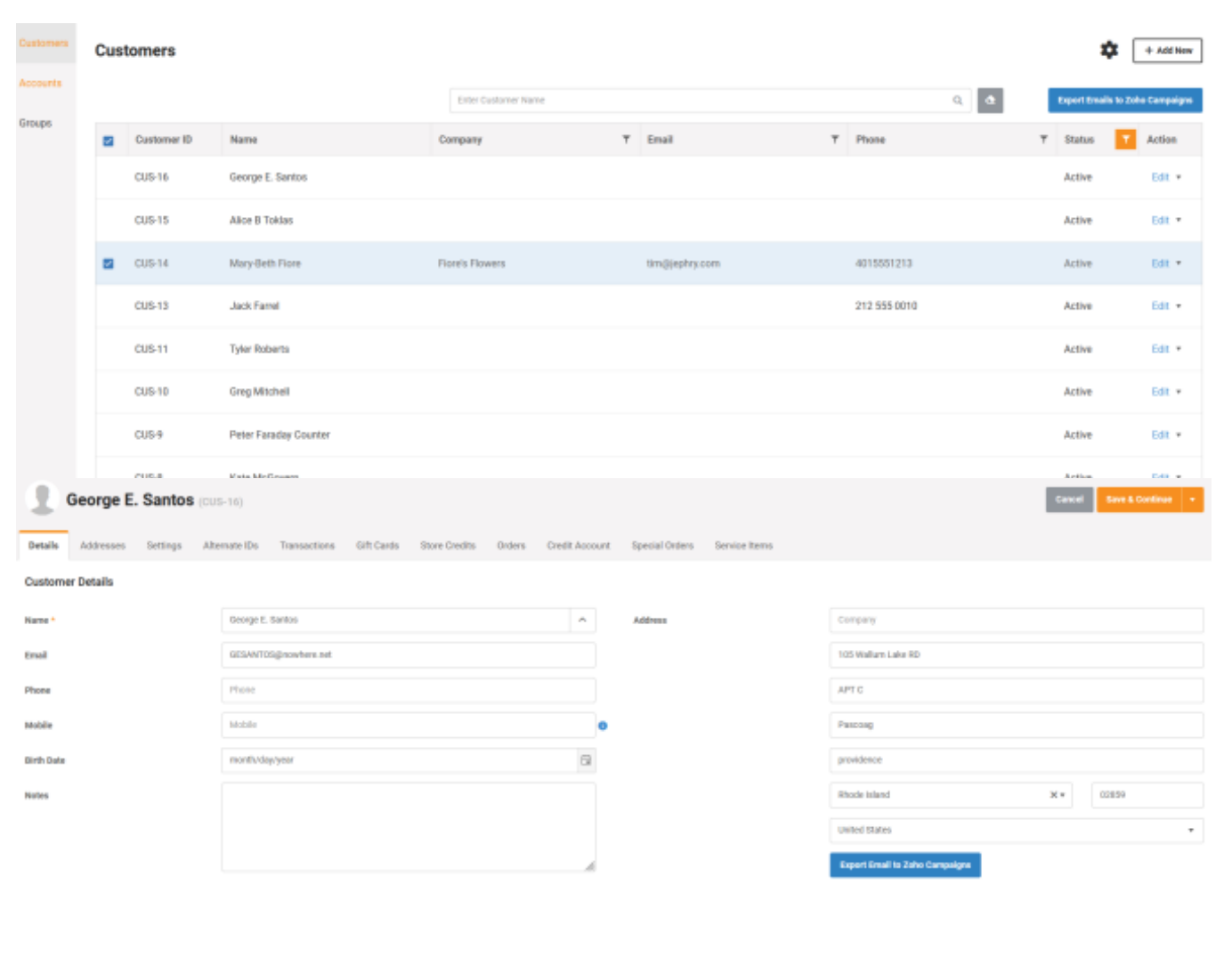 Sending customer emails to Zoho